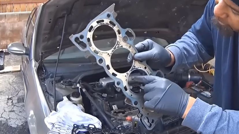 A head gasket is placed between the cylinder head and the engine block. It forms a tight seal to enclose the combustion process in the engine. It also stops oil and coolant fluid from mixing.