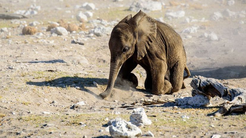 Baby elephants are called calves and adult males are called bulls and the females cows. Elephants are pregnant for a whopping 22 months and their babies weigh an average of 200 lbs at birth.